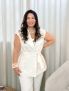 Macacão regata em linho com faixa removível na cintura, modelagem reta e caimento leve. O tecido em linho é fresco, natural e traz sofisticação sem abrir mão do conforto. A faixa ajustável permite variar o uso, marcando ou não a cintura conforme a ocasião.
